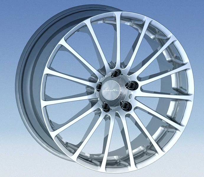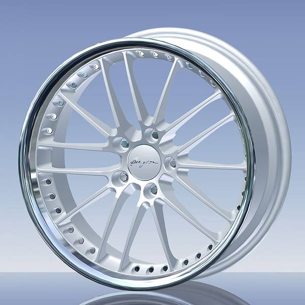 einteiliges Rad mit Edelstahlrand und Hochglanzlackierung in mehrteiliger Optik von 18 bis 23 Zoll